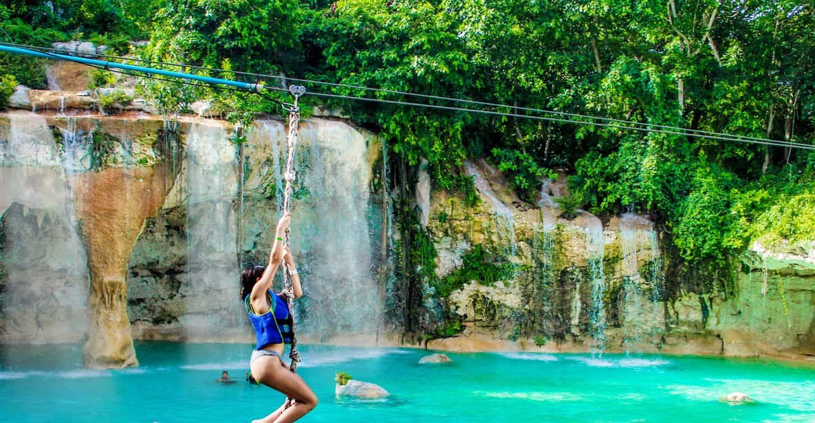 Saltos Azules: Jump from our Mabo rope, soar the skies in our Macuya Swing, zip and thrill in our monkey bar! And ride our water hammocks that take you speeding and splashing in these refreshing waters surrounded by ancient caves and impressive waterfalls. The ride of a lifetime!